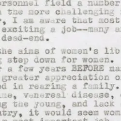 Mrs. Thomas Zeko sent this letter to Representative Don Edwards in opposition to the Equal Rights Amendment (ERA). The ERA sparked a nationwide debate in the 1960s and 1970s over changing views of the social roles of women. In this letter to her congressman, Mrs. Thomas Zeko expressed her opposition to the ERA. She argues that while women should receive equal pay for equal work, women will not likely find satisfaction when competing with a man for a job: “that a woman will find her fulfillment in competing for some traditionally male position just isn’t so.”