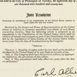 The Equal Rights Amendment was first introduced in Congress in 1923 by Susan B. Anthony’s nephew, Congressman Daniel R. Anthony. Drafted by Alice Paul, a leader in the fight for women’s rights, it was proposed as a way to end discrimination against women.