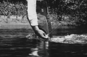 This photograph shows Ernest Hemingway fly fishing.