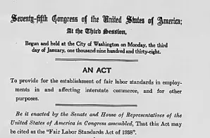 This law banned child labor and set the minimum hourly wage and maximum numbers of hours in a workweek. The act prohibits “oppressive child labor” in the United States, which is defined, with exceptions, as the employment of youth under the age of 16 in any occupation or the employment of youth under 18 years old in hazardous occupations.