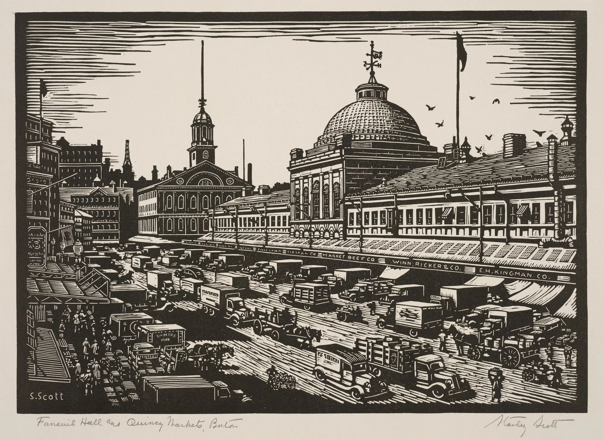 The image comes from a series of images depicting historic buildings made by Scott, all in Boston with the exception of the U.S. Capitol Building in Washington, DC.
