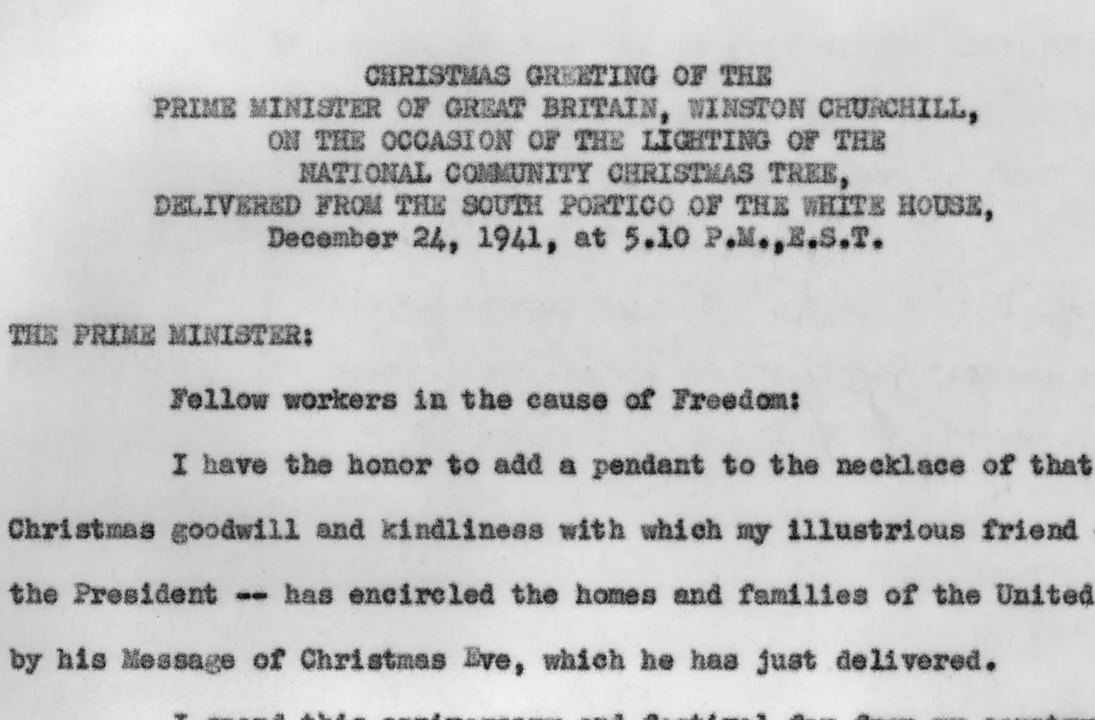 Full Citation: Franklin D. Roosevelt and Winston Churchill Christmas eve greeting from the White House in Washington, D.C.; 12/24/1941; First Carbon Files; Speeches of President Franklin D. Roosevelt, 1933 – 1945; Collection FDR-PPF: Papers as President, President’s Personal File,; Franklin D. Roosevelt Library, Hyde Park, NY. [Online Version, https://docsteach.org/document/fdr-and-churchill-christmas-eve-greeting-from-the-white-house/, April 1, 2026]