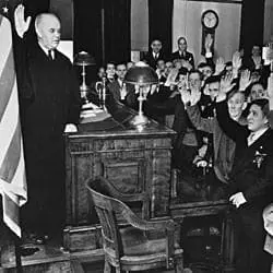 Full Citation: 306-PS-49-13909; Photograph of Federal Judge Michael Igoe Administering Oath of Allegiance; 10/13/1936; Master File Photographs of U.S. and Foreign Personalities, World Events, and American Economic, Social, and Cultural Life, ca. 1953–ca. 1994; Records of the U.S. Information Agency, Record Group 306; National Archives at College Park, College Park, MD. [Online Version, https://docsteach.org/document/federal-judge-michael-igoe-administering-oath-of-allegiance/, April 7, 2026]