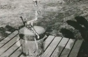 The original caption for this photograph reads: “A drinking fountain, the only one found on the grounds at Gloucester County Training School.” The plaintiffs entered it as evidence (Exhibit No. 10) in the case to show the unequal facilities at schools for white and Black students in Gloucester County, Virginia. Gloucester Training High School, the school for Black students, had one outdoor water fountain. Botetourt High School, a white high school, had two indoor fountains.