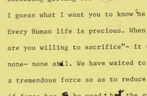 I guess what I want you to know as a father is this: Every Human life is precious. When the question is asked “How many lives are you willing to sacrifice”- it tears at my heart. The answer, of course, is none- none at all. We have waited to give sanctions a chance, we have moved a tremendous force so as to reduce the risk to every American soldier if force has to be used; but the question of loss of life still lingers and plagues the heart.
