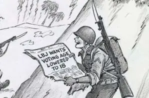 When 18-year-olds were drafted to fight in Vietnam, the long-simmering push to lower the voting age to 18 took hold. The 26th Amendment was ratified in 1971, faster