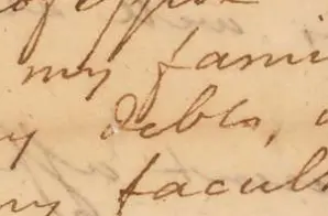 In the meantime, my lands now in a course;of sale [+ settlement] would accelerate the extinguishment of my debt, and in the end leave me a handsome clear property. It was also allowable for me to take into view, collaterally, the expectations of my wife; what have been of late partly realised. She is now entitled; to [crossed out word] a property of between two and three thousand pounds (as I compute by descent from her mother; and her father understood to poses a large estate. I feel all the delicacy of the allusion; but the occupation I hold will plead my excuse. And that venerable father, I am sure, will pardon- He knows well all the nicety of my past conduct.