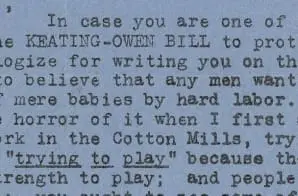 Suzanne Heber’s horror at seeing “the lives ground out of mere babies by hard labor” spurred her to support child labor regulation. But the Supreme Court invalidated several child labor laws, including Keating-Owen. In 1924, Congress proposed the Child Labor Amendment, but it wasn’t ratified by three-fourths of the states. Subsequent legislation was upheld, and the proposed amendment became moot.