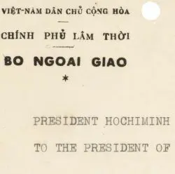 On February 28, 1946, Ho Chi Minh sent this telegram from Hanoi, Vietnam, through the Office of Strategic Services (OSS) station in Kunming, China, to President Harry S. Truman in Washington, DC. In the message the Vietnamese leader asks for American support of Vietnam’s independence from France. He also asks for U.S. help in making negotiations with France comply with the principles of the Atlantic and San Francisco Charters.