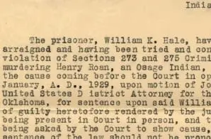 Although he was behind the murders of at least 60 Native Americans—including nearly an entire family—William Hale was put on trial for only one of his victims, Henry Roan. These crimes occurred in the early years of the FBI, which investigated and arrested William Hale and his accomplice, John Ramsey, for Roan’s murder. The other cases went unsolved; however, the FBI strongly believed Hale was responsible.
