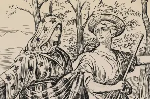 The cartoonist proclaims the indivisible link of the Constitution and the flag through his reference to the tale of faithful companionship told in the biblical story of Ruth and Naomi, where Naomi pledged to follow her mother-in-law Ruth wherever she went. This cartoon identifies the cartoonist with the position of expansionists who favored extending U.S. citizenship to territorial residents. Commercial expansionists, by contrast, favored U.S. ownership of land without extending citizenship.