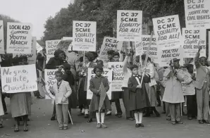This photograph shows students picketing at a youth march for integrated schools rally, October 25, 1958, in Washington, DC.