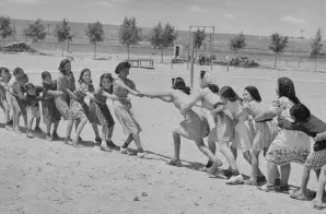 Full Citation: Photograph 75-N-PU-464; Girls at Isleta Day School in a tug of war, Albuquerque, New Mexico; 1940; General Photographs of Indians, 1900 – 1957; Records of the Bureau of Indian Affairs, Record Group 75; National Archives at College Park, College Park, MD. [Online Version, https://docsteach.org/document/isleta-day-school-tug-of-war/, January 20, 2026]