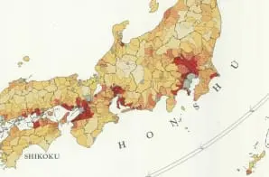 Full Citation: Japan Population Density, 1940 Census by Gun; 4/1947; Published Maps, 1947 – 2015; Records of the Central Intelligence Agency, Record Group 263; National Archives at College Park, College Park, MD. [Online Version, https://docsteach.org/document/japan-population-density-1940-census-by-gun/, March 26, 2026]
