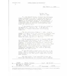 John Lewis gave this statement to an FBI agent about being assaulted on the Edmund Pettus Bridge while marching in Selma, Alabama, on March 7, 1965, “Bloody Sunday.” He received a head injury in the melee. Lewis, representing the Student Non-Violent Coordinating Committee (SNCC), led the march alongside Hosea Williams of the Southern Christian Leadership Conference (SCLC).