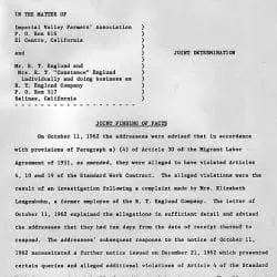This document is related to the Bracero Program, a federally sponsored labor program during the 1950s-early 1960’s, whereby migrant/migratory laborers from Mexico were provided for seasonal, mostly agricultural employment, often on the farms of California growers. The document provides insight into Hispanic/Latino/Mexican immigration and labor history, including controversies which surfaced during the “farm labor movement” of the years thereafter.