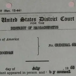 This is the judgement of Mitchell Goodman from the “Boston Five” anti-draft resistance group. This document was digitized by teachers in our Primarily Teaching 2013 Summer Workshop at our Boston location.