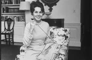 This photograph is of Julie Nixon Eisenhower doing needle point, taken in 1971.