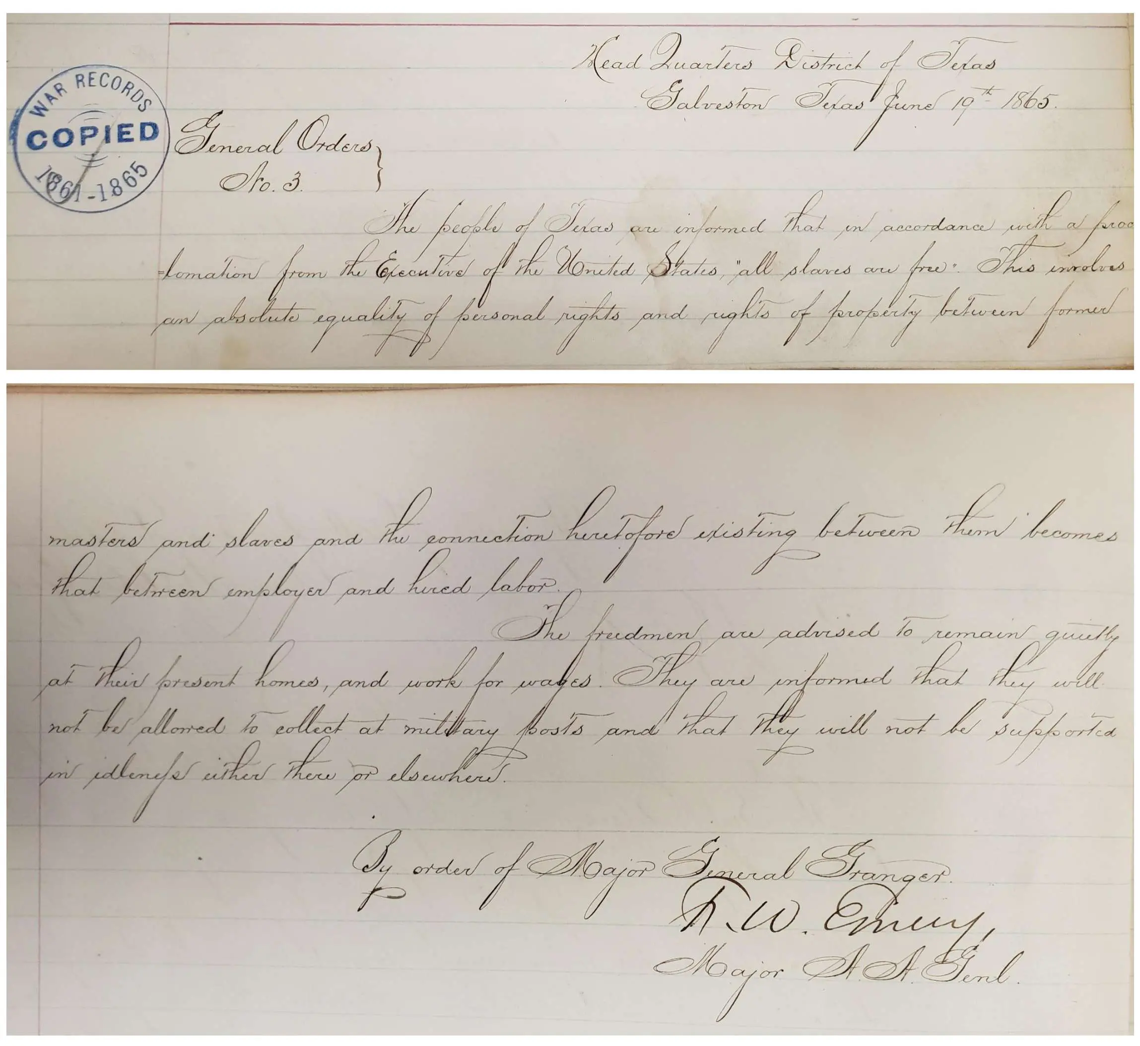 This order represents the Federal Government’s final execution and fulfillment of the terms of the Emancipation Proclamation. The people to whom this order was addressed were the last group of Americans to be informed that all formerly enslaved persons were now free.