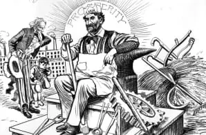 This illustration entitled “Labor Day 1899”, by cartoonist Clifford Berryman, which appeared in the Washington Post on September 4, 1899, depicts Uncle Sam and a schoolboy celebrating Labor Day by bowing and paying homage to the common working man.