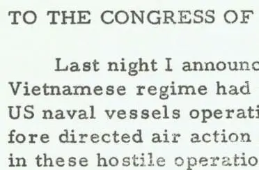 This is a message from President Lyndon Johnson to Congress, after the second incident in the Tonkin Gulf, in which he asks for a resolution on Southeast Asia.