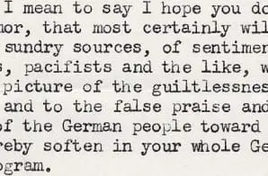In this letter, Dwight D. Eisenhower’s old friend, Alexander Frieder, wrote that he hoped Eisenhower would not forgot German war crimes in the aftermath of World War II.