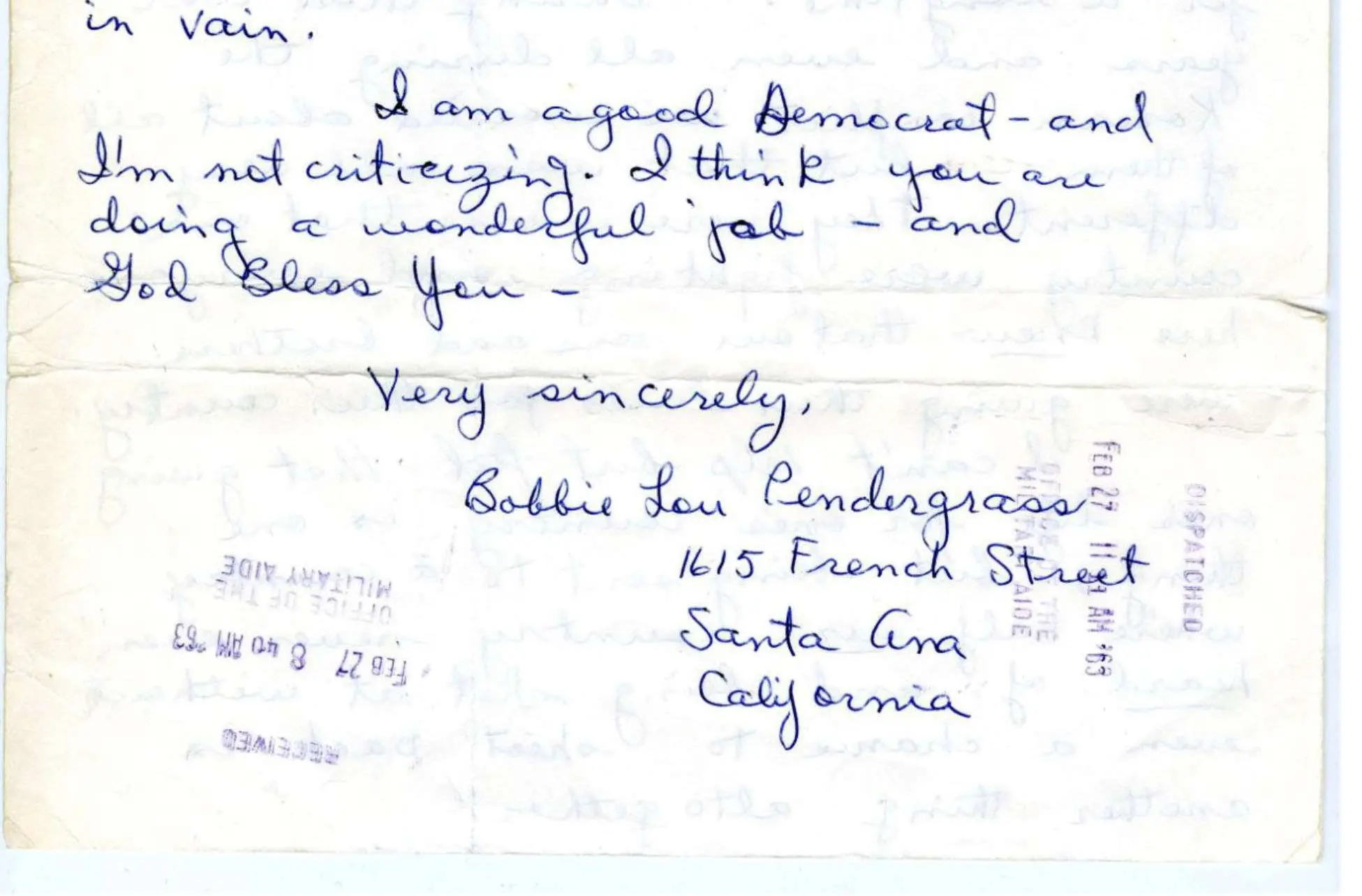 Bobbie Lou Pendergrass sent this letter to President John F. Kennedy just after she lost her brother, Specialist James Delmas McAndrew, in South Vietnam. He was one of seven crew members killed in a helicopter crash.