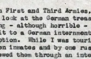This letter is notable for its description of Dwight D. Eisenhower’s visit to the Ohrdruf concentration camp near Gotha, Germany; it was the first such camp he had seen. Eisenhower also mentions visiting the salt mines where the Germans had hidden looted gold and artwork.