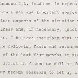 This item is a letter to President Franklin D. Roosevelt from Albert Einstein advising Roosevelt of developments in the field of nuclear energy, particularly the possibility that foreign governments might harness a uranium-based nuclear chain reaction to create a weapon, and recommending quick action by the Roosevelt administration to advance American nuclear research. This letter was a collaboration between Einstein, physicist Leo Szilard, and economist Alexander Sachs, who had been an administrator of the National Recovery Administration and Roosevelt adviser. Sachs personally delivered the letter to Roosevelt on October 11, 1939. The outbreak of World War II on September 1, 1939 had delayed the delivery. This letter is credited with launching what would eventually become known as the Manhattan Project.