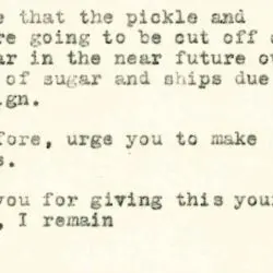 The Food Administration for Wisconsin sent this letter to Onalaska Pickle and Canning Company to produce more sour pickles due to war shortages. This document was digitized by teachers in our Primarily Teaching 2015 Summer Workshop in Chicago.