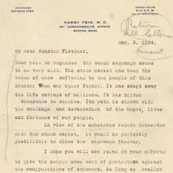 View the full document here: https://docsteach.org/document/letter-from-harry-fein-supporting-the-securities-exchange-act-of-1934/