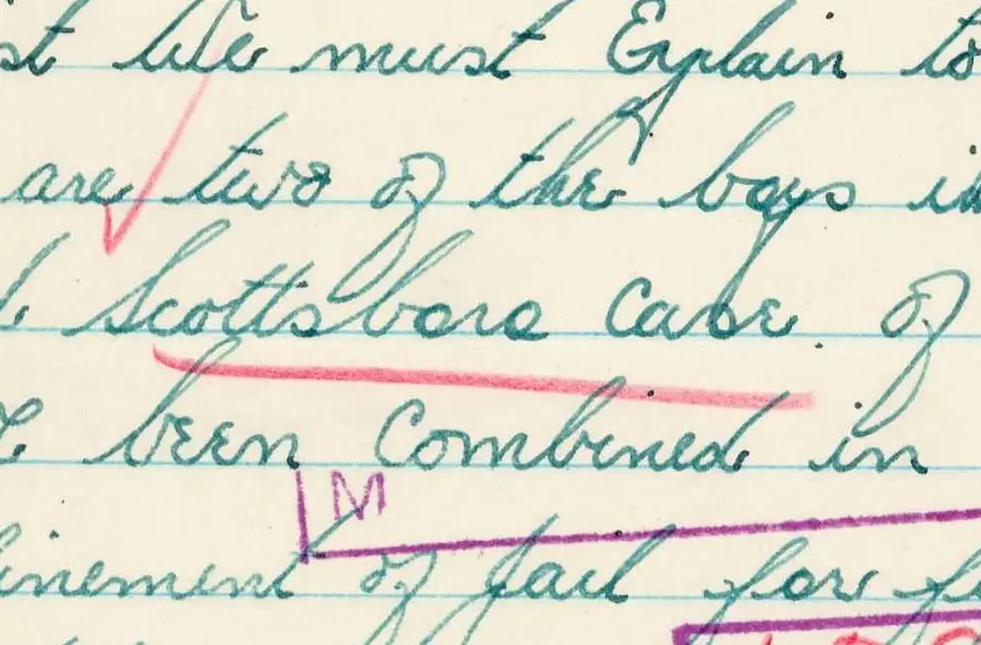We are writing you a short letter here and I hope your Hon! you will take our letter under consideration. first We must Explain to you that We are two of the boys in the so called Scottsboro case of Whoim have been combined in the confinement of jail for fifty months and I am quite sure your Hon! you have read every article in the papers concerning our case and in your doing so by fully studying and considering the true facts of our case you find that We are some poor Innocence boys of Whom only trying to pass through hunting jobs so as to support my poor helpless mothers and sisters. and our father have been dead every since November the 16th 1923. and We have been the only Support our mothers and Sisters had every since until March 25th 1931 and then We Were unjustly arrested and accusof attack upon two White Women and Was tried in April 1931 and unjustly convicted but the US Supreme Court set aside our conviction in November 1932 and have been Waiting every since to be retried, now Your Hon, you can just Imagine how We poor boys have suffered in this confinement from our dear old helpless mother of whom are unable to help herself, and Your Hon Sir We are begging you in the name sake of our dear old mother to bring our case to a early conclusion and in your decision Sire we feels assure that We Will be Well Satisfied because our dear mother is anxiously Waiting on her two Son’s return home. May God bless you