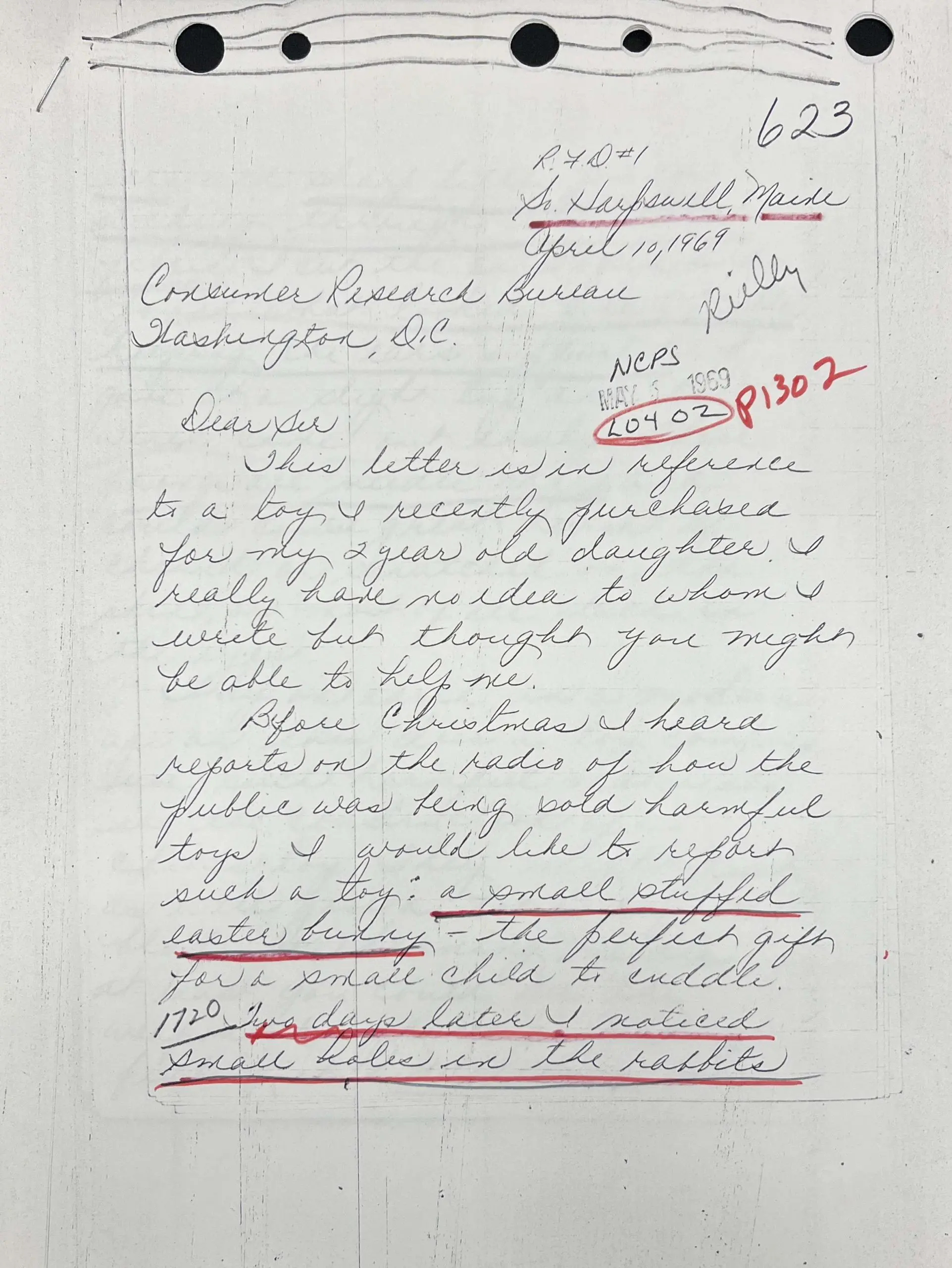 On April 10, 1969, Dianne Morgan of Harpswell, Maine, mailed a complaint to the National Commission on Product Safety about a stuffed Easter bunny. She had purchased the doll for her two-year-old daughter and was greatly pleased to find “the perfect gift for a small child to cuddle.”
