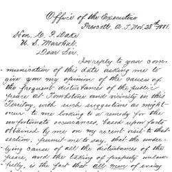 View the full document here: https://docsteach.org/document/letter-relating-to-the-causes-of-the-disturbances-of-the-public-peace-in-tombstone-arizona-territory/