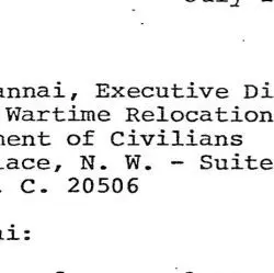 In 1980, Congress appointed a Commission on Wartime Relocation and Internment of Civilians to conduct an official study into Japanese-American internment during World War II. John McCloy, Assistant Secretary of War during World War II, sent this letter to Mr. Paul T. Bannai, executive director of the commission, expressing his willingness to testify regarding the “relocation” program.
