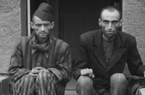 Full Citation: Photograph PHOCO-A-65639(50); WWII Europe: Germany: Concentration Camps: ‘Two men sitting after liberation from Lager-Norhausen Death Camp’; 4/14/1945; Franklin D. Roosevelt Library Public Domain Photographs, 1882 – 1962; Collection FDR-PHOCO: Franklin D. Roosevelt Library Public Domain Photographs,; Franklin D. Roosevelt Library, Hyde Park, NY. [Online Version, https://docsteach.org/document/liberated-lager-nordhausen/, March 31, 2026]