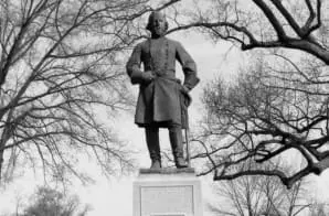The bronze statue depicts the Confederate General in a double breasted tunic coat with his hand on his sword. On the pedestal is inscribed “Brigadier General Lloyd Tilghman C.S.A. killed at the Battle of Champion’s Hill, Mississippi, May 16, 1863,” and “To the faithful sons of the Confederate States of America who gave all to uphold Constitutional Liberty and States’ Rights.”