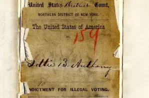 This is a record of indictment for Lottie B. Anthony who was indicted with voting illegally in Rochester, NY, in 1872.