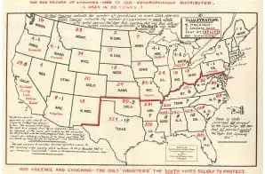 The map was created by a leader in the anti-lynching crusade, Ida B. Wells-Barnett, editor of the Memphis Free Speech and Headlight and author of two anti-lynching texts, Southern Horrors and The Red Record. It was issued by the Colored Women’s Clubs of Michigan.