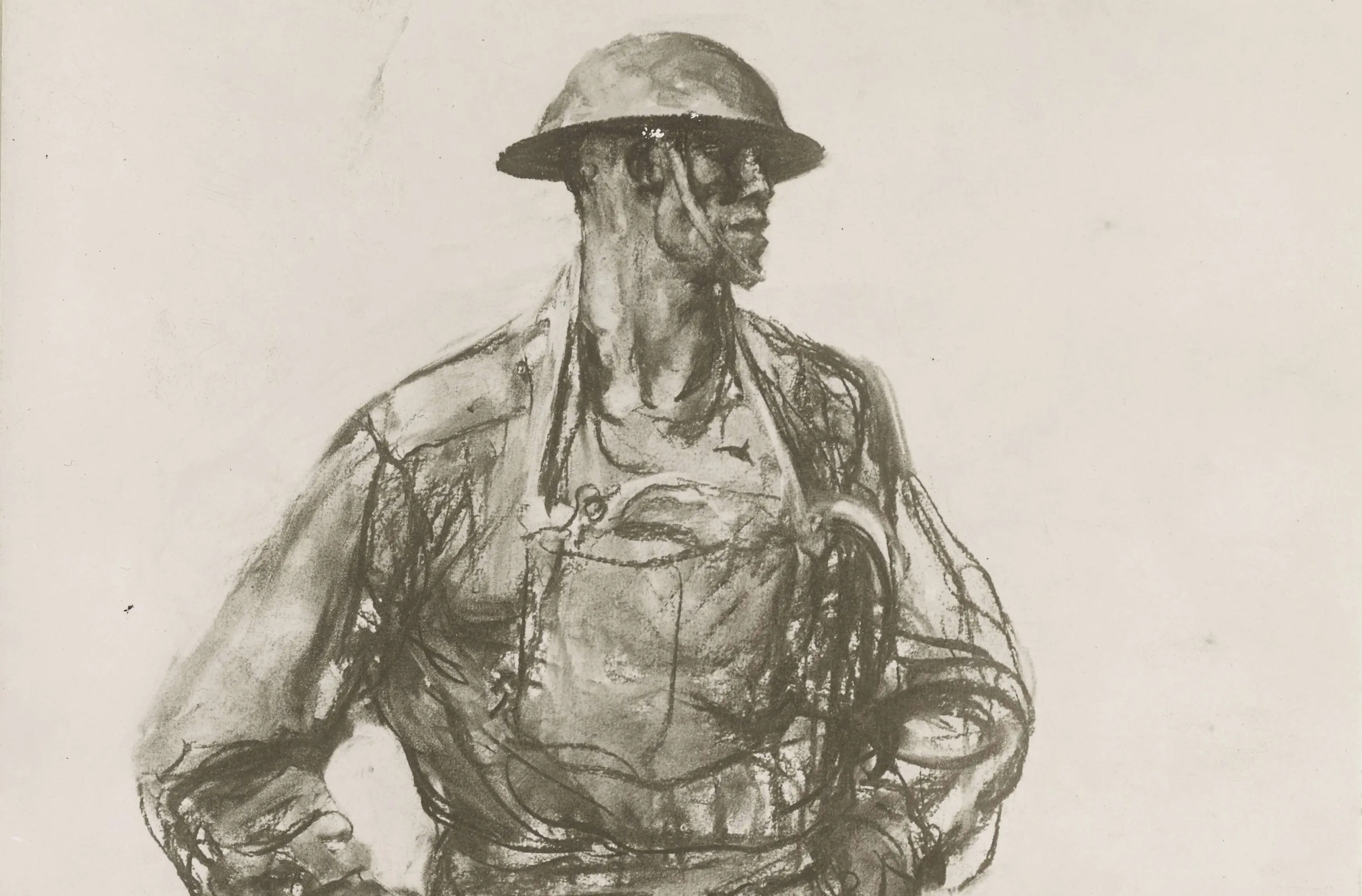 During World War I, the U.S. Government’s Committee for Public Information employed artists, who followed troops into France with the American Expeditionary Forces (AEF) during the war. Commissioned as officers in the Corps of Engineers, the artists were assigned to create artwork in a variety of media to show the war to Americans back home.