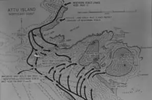 This map shows the Alaskan territorial island of Attu—an Aleutian Island closer to Japan than to mainland Alaska. Japanese forces occupied Attu on June 7, 1942, during World War II. This set the stage for the only WWII land battle that would take place on U.S. soil.