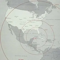 President John F. Kennedy used this map during Cuban Missile Crisis meetings from September 1962 to October 1962 to show the location in Cuba of a potential missile range.
