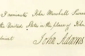 I nominate John Marshall Secretary of State to be Chief Justice of the United States in the place of John Jay who has declined his appointment