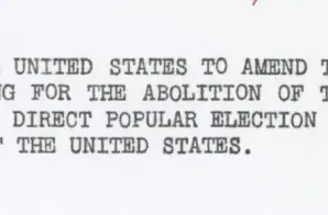 This resolution was sent by the Commonwealth of Massachusetts to Congress, requesting that they initiate the process to create a constitutional amendment to abolish the Electoral College system and implement a direct popular election for President and Vice President. The resolution argues that the Electoral College system is archaic, undemocratic, and dangerous because of the possibility of deadlock.