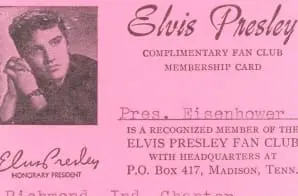Full Citation: Membership Card from the Elvis Presley Fan Club; ca. 1953-1961; PPF 1-Y Honorary Memberships, Accepted and Tendered, E; President Dwight D. Eisenhower’s Personal Files, 1953 – 1961; Collection DDE-WHCF: White House Central Files (Eisenhower Administration),; Dwight D. Eisenhower Library, Abilene, KS. [Online Version, https://docsteach.org/document/membership-card-from-the-elvis-presley-fan-club/, March 28, 2026]