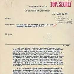 Full Citation: Memorandum of Conversation by Charles Bohlen; 4/20/1945; Collection HST-PSF: President’s Secretary’s Files (Truman Administration),. [Online Version, https://docsteach.org/document/memorandum-of-conversation-by-charles-bohlen/, April 1, 2026]
