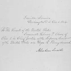 Full Citation: Message of President Abraham Lincoln nominating Salmon P. Chase to be Chief Justice of the Supreme Court of the United States; 12/6/1864; Records of the U.S. Senate, Record Group 46. [Online Version, https://docsteach.org/document/message-of-president-abraham-lincoln-nominating-salmon-p-chase-to-be-chief-justice-of-the-supreme-court-of-the-united-states/, February 1, 2026]