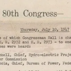 Full Citation: Minutes of the House Committee on Interstate and Foreign Commerce; 7/10/1947-7/11/1947; Records of the U.S. House of Representatives, Record Group 233. [Online Version, https://docsteach.org/document/minutes-of-the-house-committee-on-interstate-and-foreign-commerce/, January 28, 2026]
