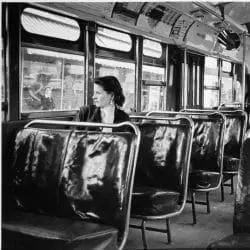 This photograph of an almost empty bus was taken during the Montgomery Bus Boycott.
