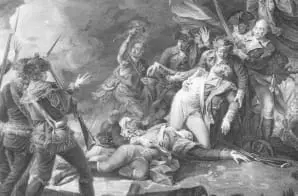 This is a copy of an engraving, published in 1808, by W. Ketterlinus, based on John Trumbull’s 1786 painting “The Death of General Montgomery in the Attack on Quebec.”